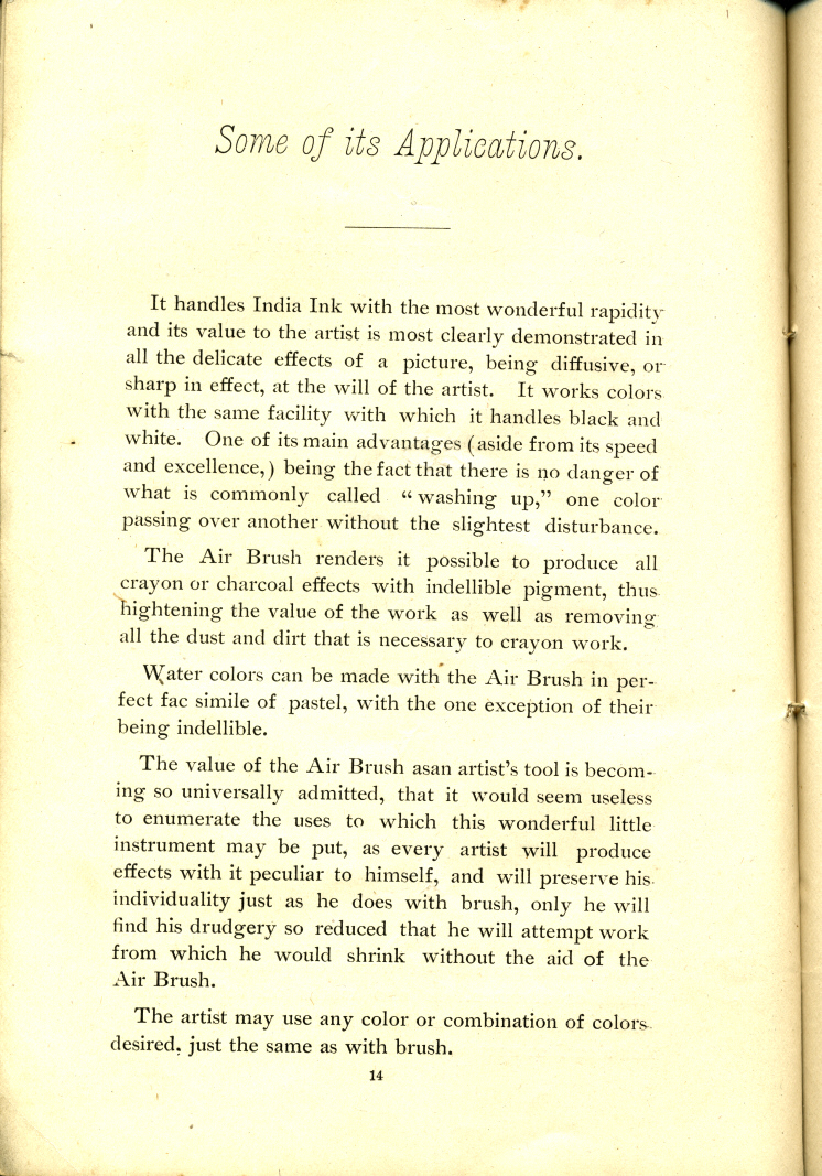 | 1884 Liberty Walkup Air Brush Mfg. Co. Booklet Page 14 | ||