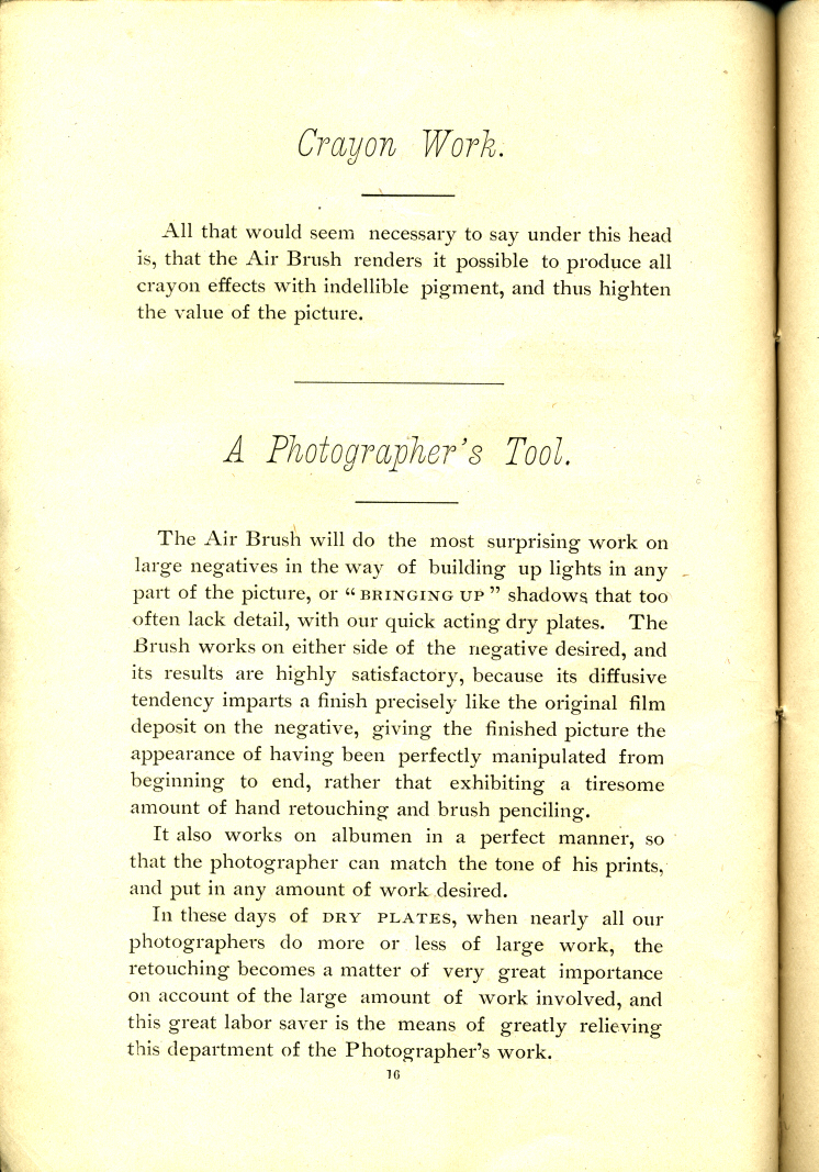 | 1884 Liberty Walkup Air Brush Mfg. Co. Booklet Page 16 | ||