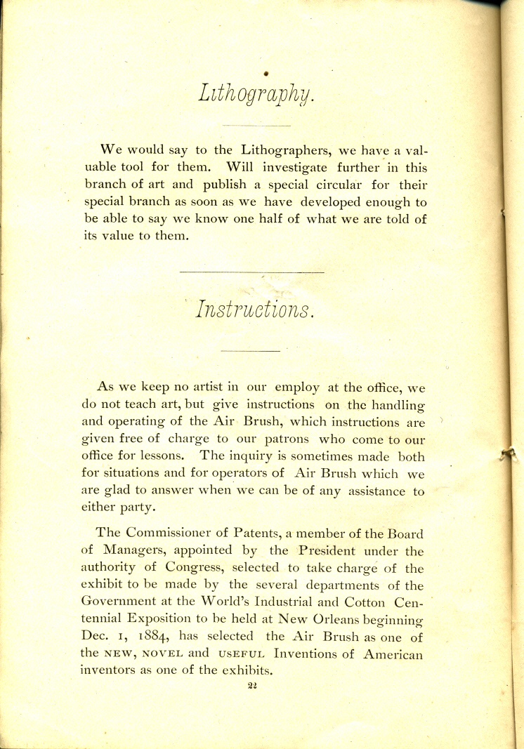 | 1884 Liberty Walkup Air Brush Mfg. Co. Booklet Page 22 | ||