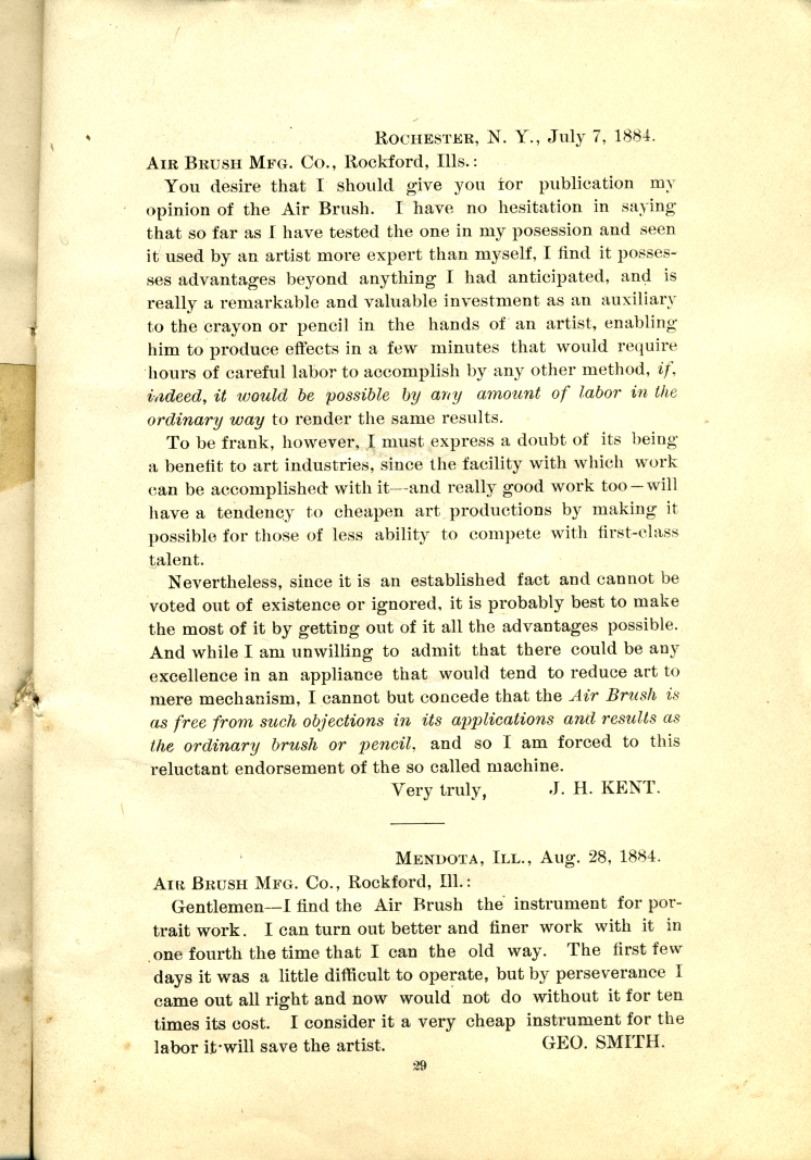 | 1884 Liberty Walkup Air Brush Mfg. Co. Booklet Page 29 | ||