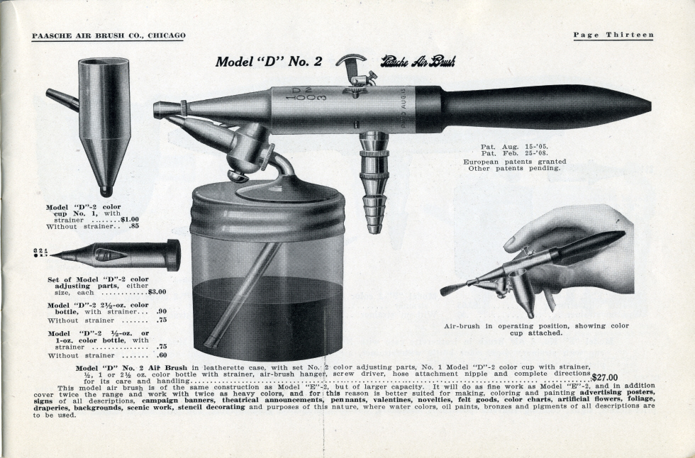 Back to the 1923 Paasche Airbrrush Co. Models D and  page. Airbrush history from The Airbrush