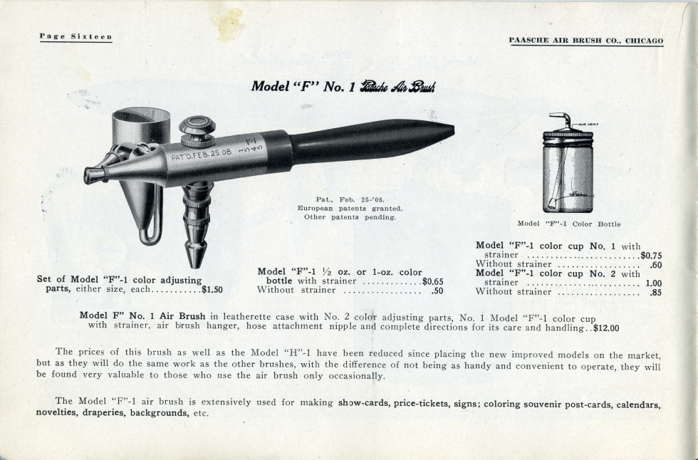 | 1915 Paasche Air Brush Catalog Page 16 | ||