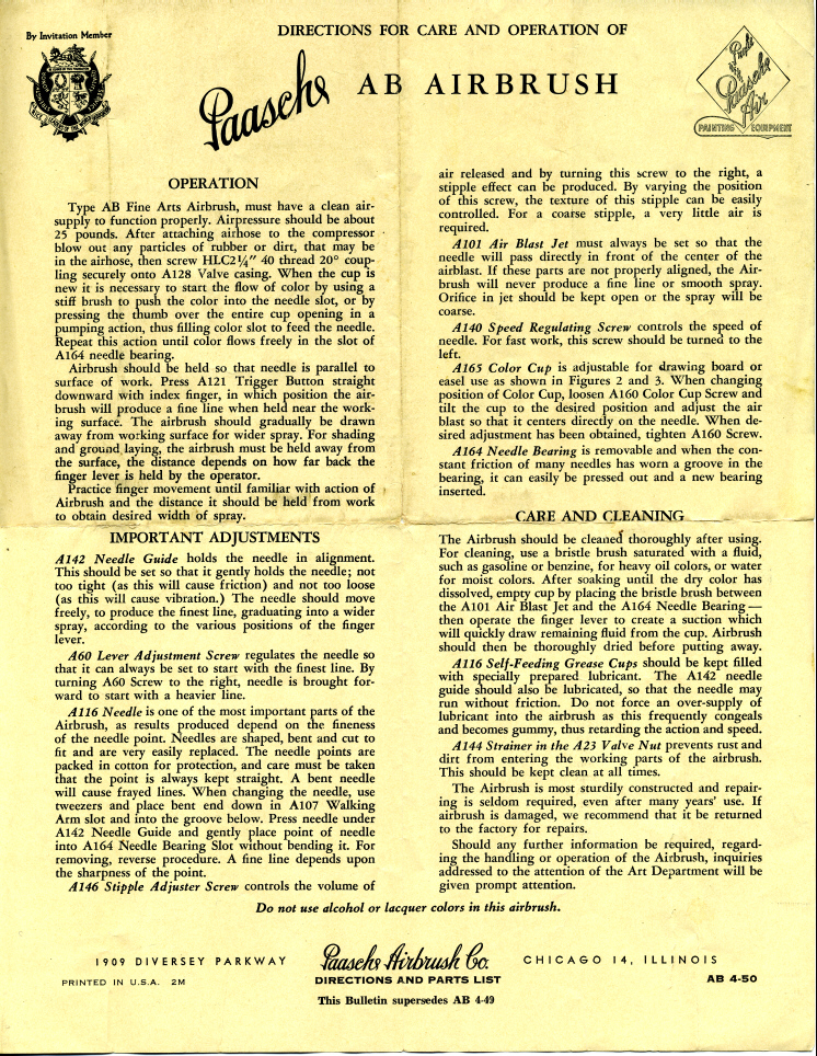 | 1950 Paasche AB Instruction Sheet Side 1 | ||