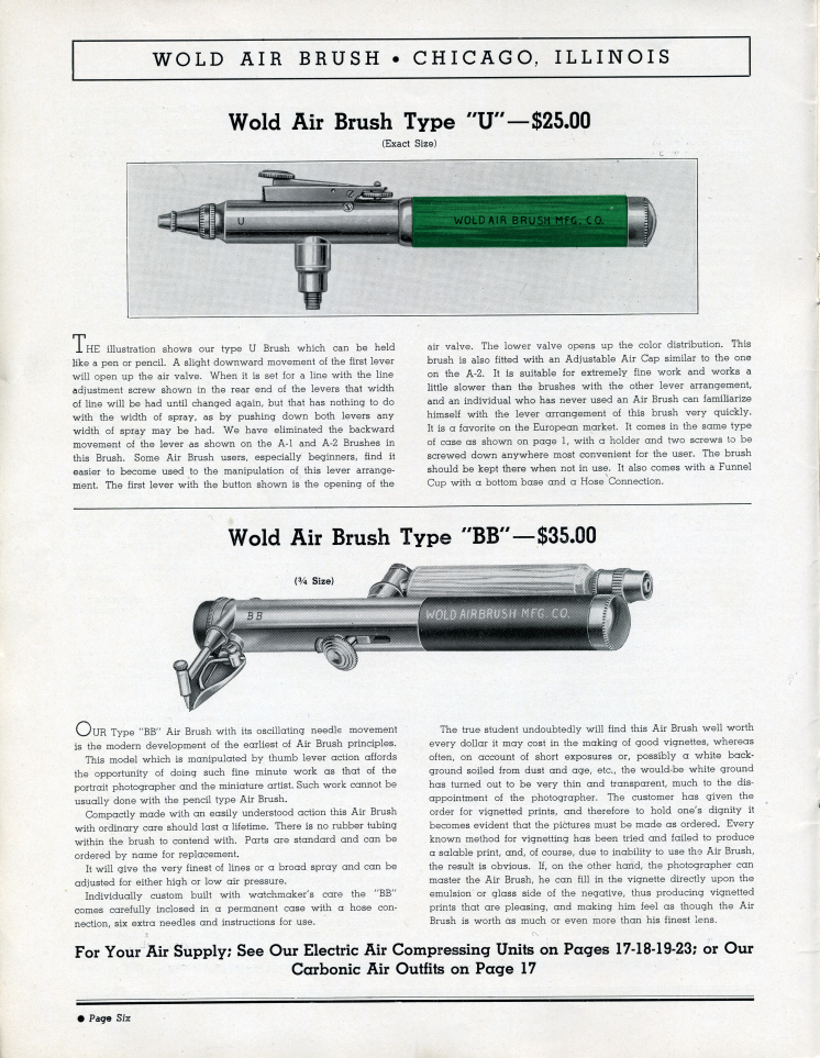 | 1930's Wold Airbrush Co. Catalog Page 6 | ||