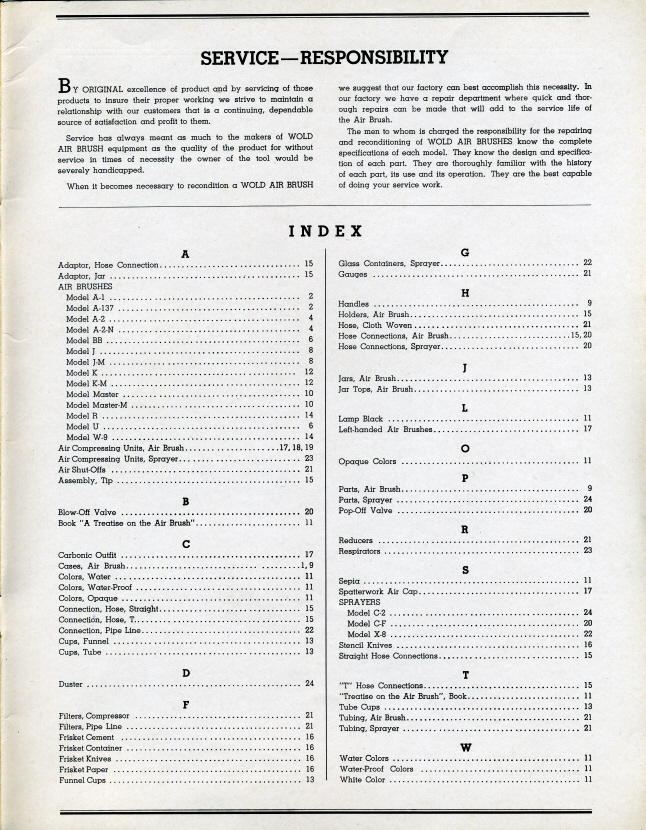 | 1930's Wold Airbrush Co. Catalog Inside Back Cover | ||