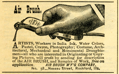 An 1884 ad for the Liberty Walkup airbrush. From the February 1884 issue of "The Century Magazine." | ||