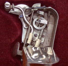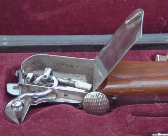 An 1885 model Air Brush in original case with bottle containing needles. The rod with the ball is a guide that you can hold on to. Made by Liberty Walkup's Air Brush Manufacturing Co. of Rockford, Illinois. | ||
