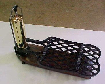 A foot operated pump made by Walkup's Air Brush Mfg. Co. The air from the pump was fed to a holding tank and then to the airbrush. The operator used both feet to power the pump, just like a treadle sewing machine. | ||