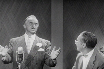 His Lordship explains William Shakespeare to Groucho Marx on Grouch's hit TV show "You Bet Your Life." Filmed in August, 1958,broadcast October 11, 1958 - From the DVD Set - "Groucho Marx - You Bet Your Life - The Lost Years" released by Sony Music (Video) © 2004 Sony Music w/permission. Click here to see it.(Opens in a new window) | ||
